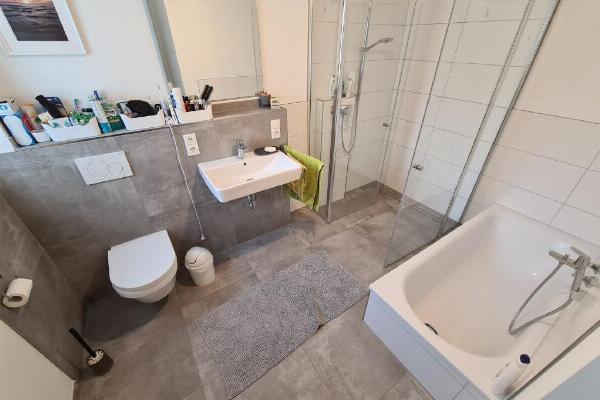 Alle Rollläden werden elektrisch betrieben. Der eigene Kellerraum bietet Platz für Ihre Waschmaschine. Ein Fahrstuhl ermöglicht einen komfortablen Zugang zur Wohnung sowie zum Kellergeschoss. Hochwertiges Design-Holzlaminat und Fliesen sorgen für ein wohnliches Ambiente. Die 3-fach verglasten Kunststofffenster sind wärmeeffizient und schalloptimiert. Die Beheizung erfolgt über eine Luft-Wärmepumpe in Kombination mit einer wasserführenden Fußbodenheizung. Zusätzlich ist das Gebäude mit einer Photovoltaik-Anlage ausgestattet, über die Sie optional Strom direkt beziehen können.