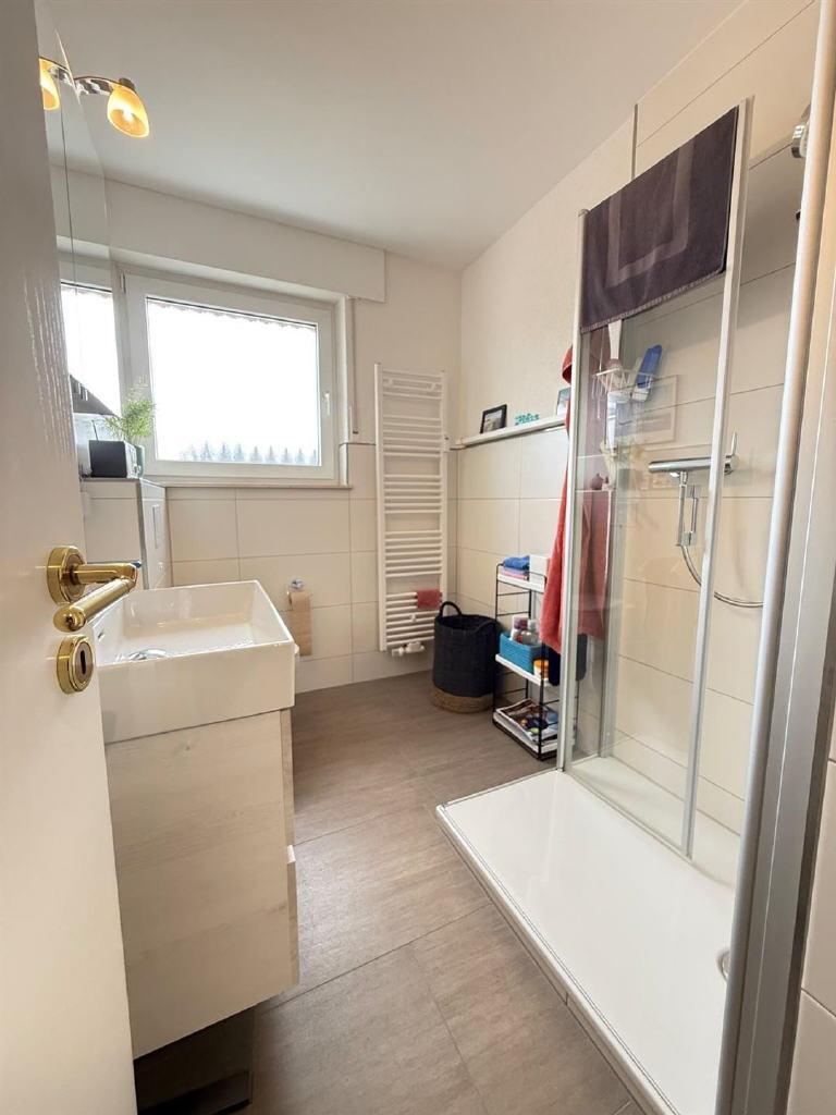 Die hellen Räume sind durchdacht angeordnet und vermitteln sofort ein angenehmes Wohngefühl. Besonders hervorzuheben ist das sanierte Tageslichtbad, das mit einer großzügigen Dusche und einem praktischen Handtuchheizkörper ausgestattet ist. Die Küche verfügt über ausreichend Platz für einen Essbereich.